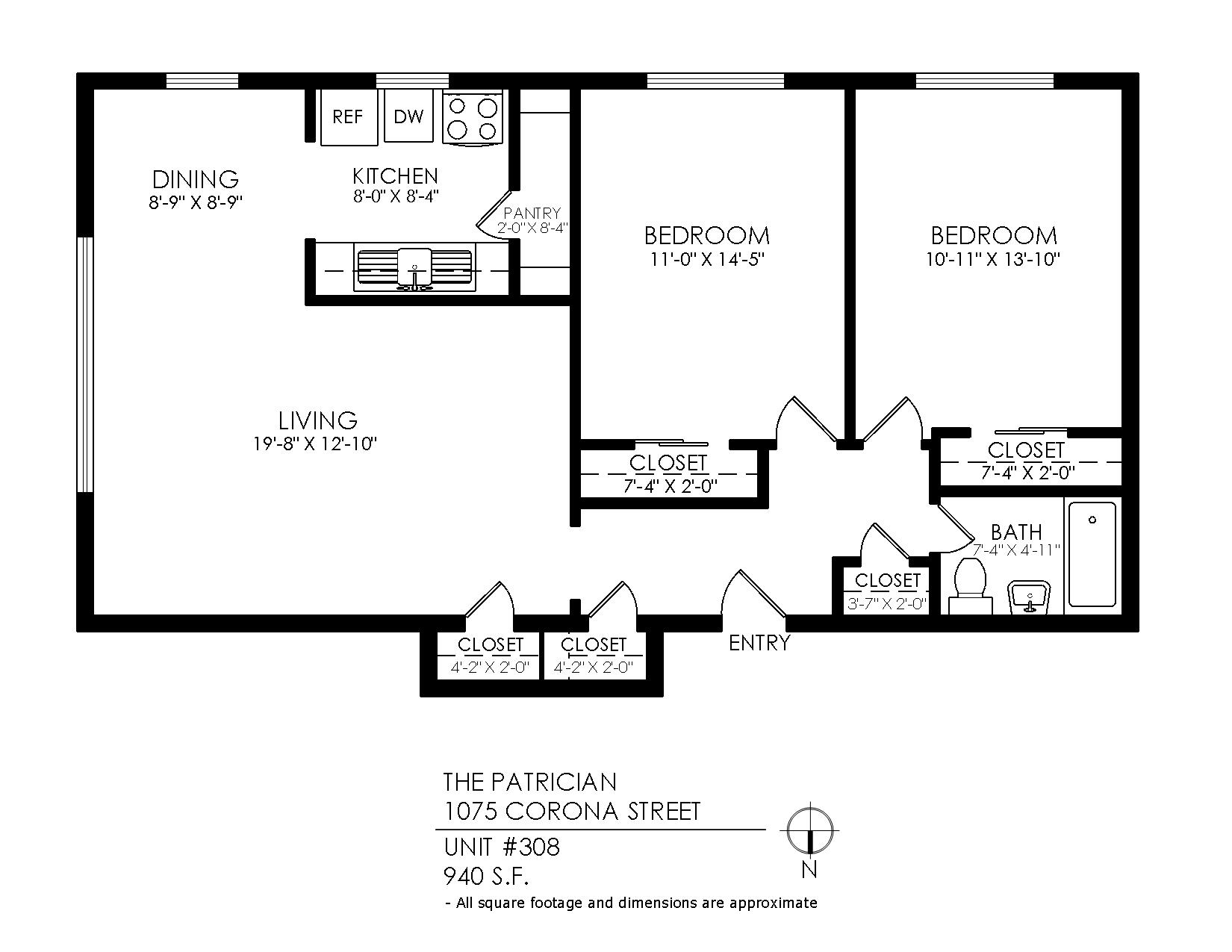 1 Bath 940 sqft.