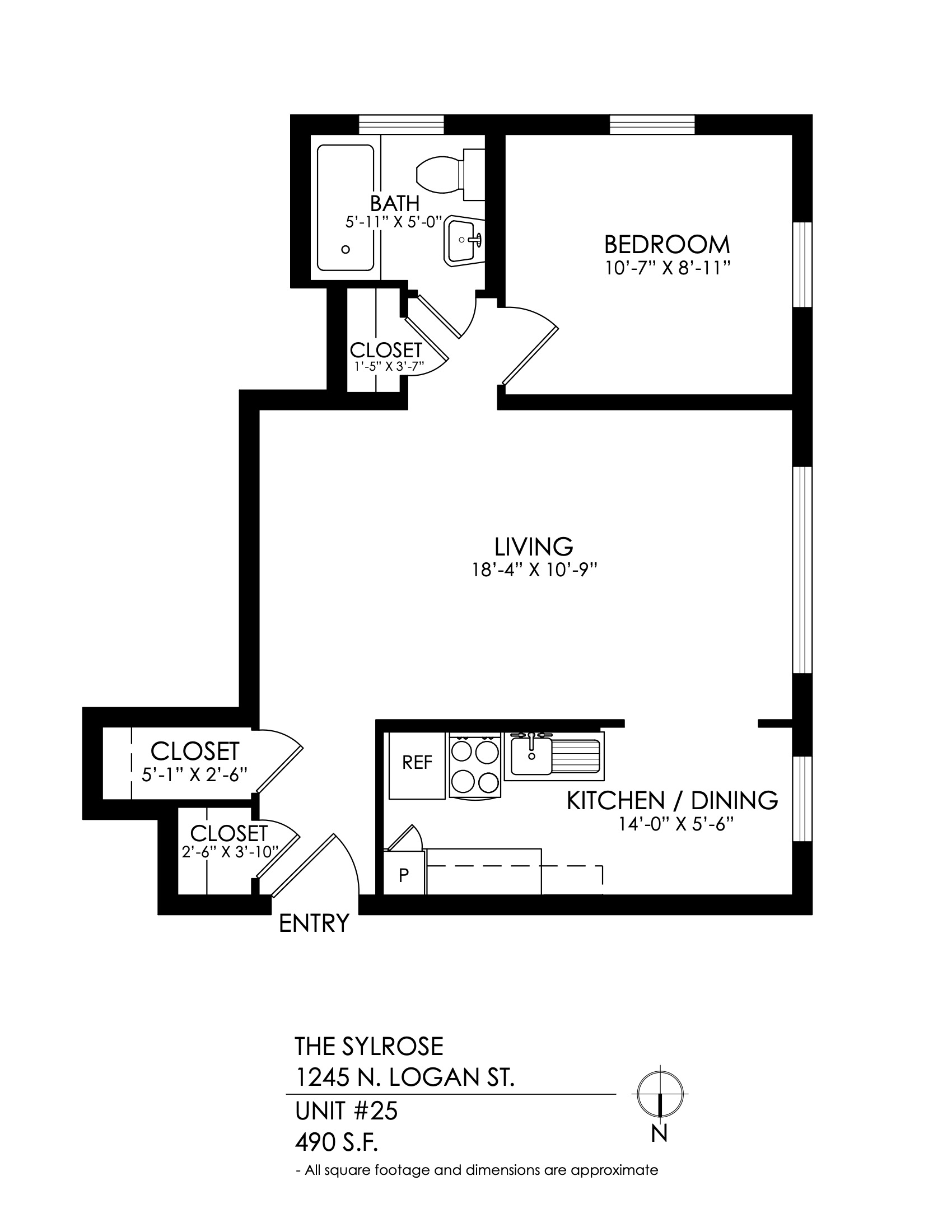 1 Bath 490 sqft.