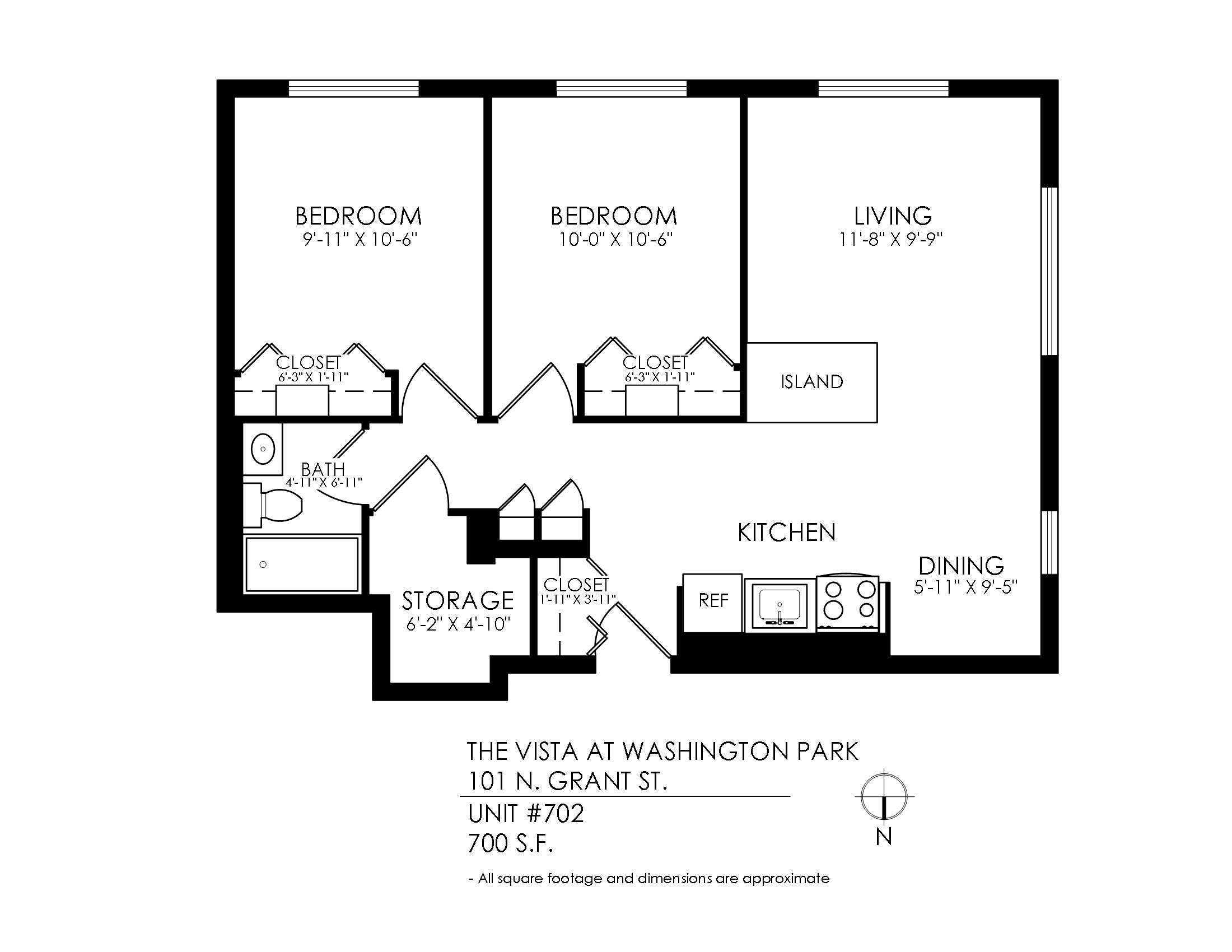1 Bath 700 sqft.
