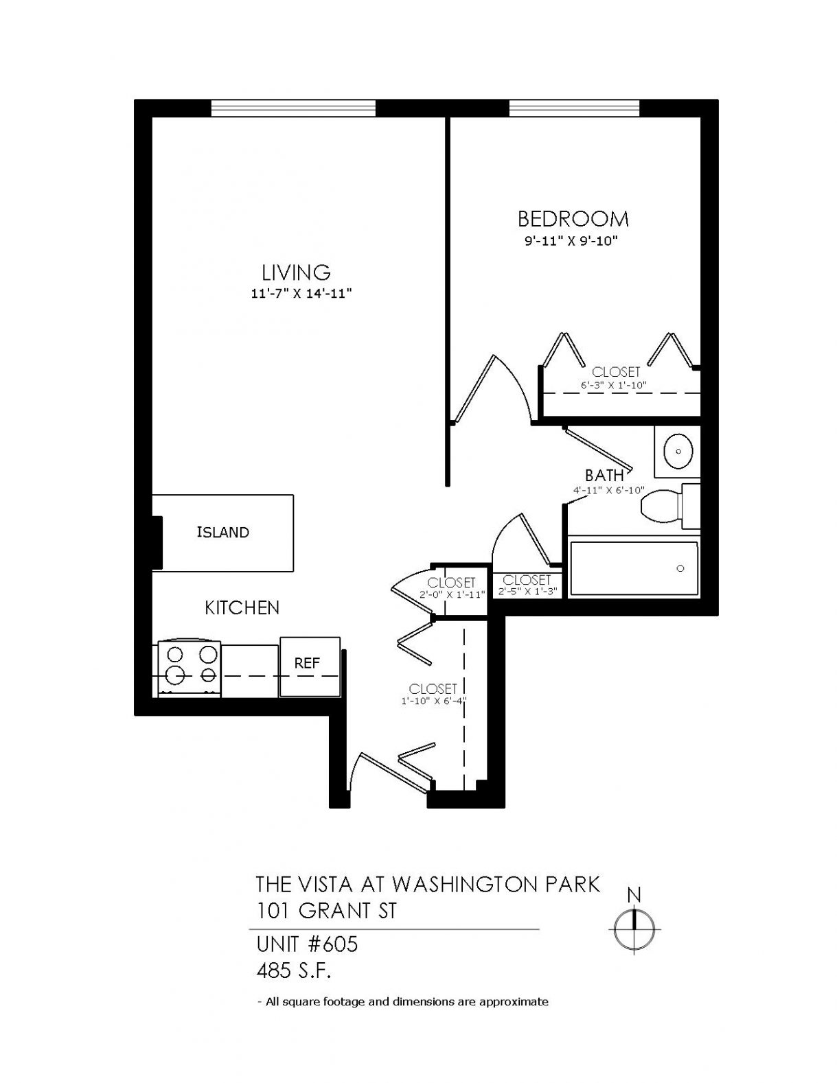 1 Bath 485 sqft.