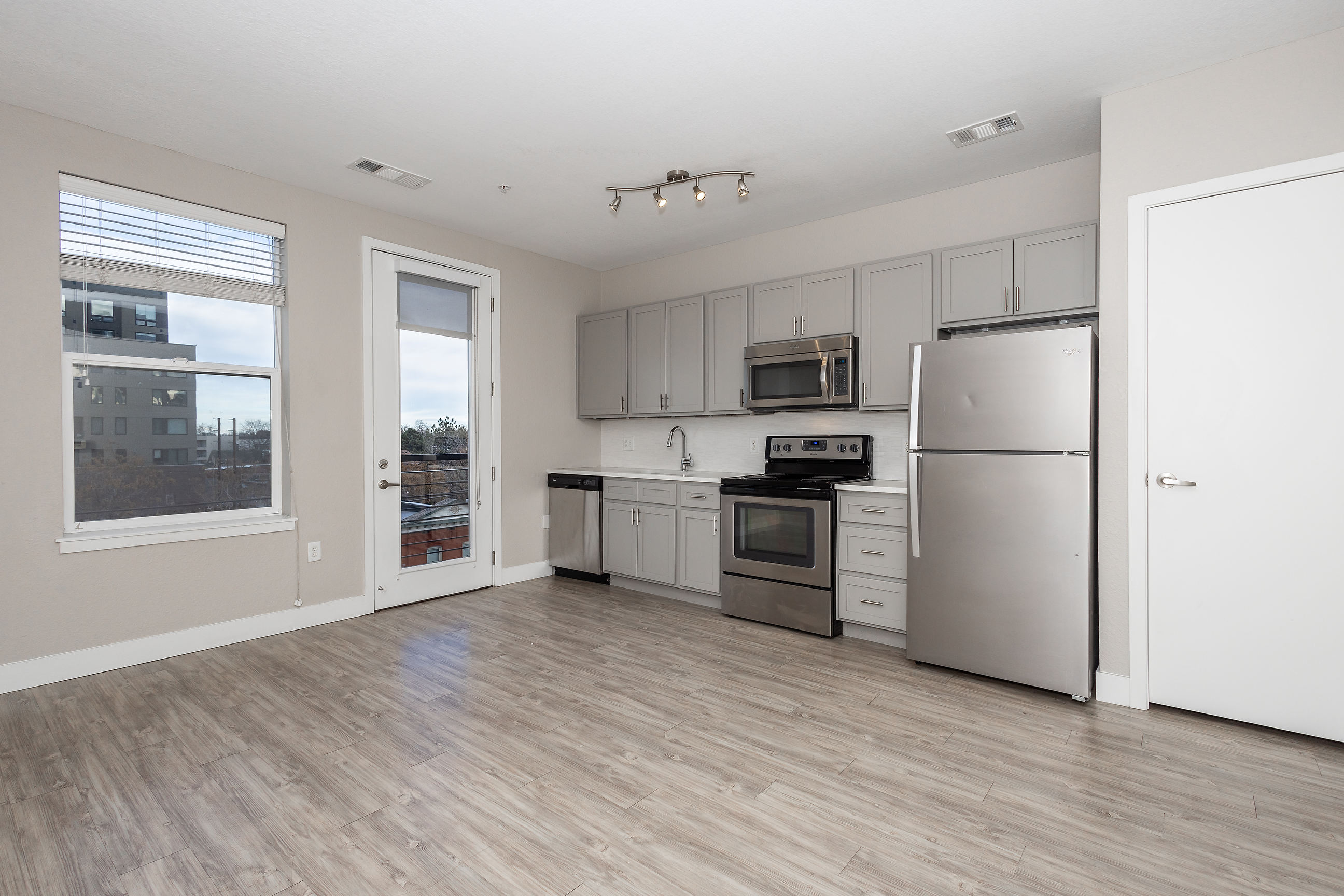 The Wheatley, is a five-story mixed-use apartment building in the Five Points neighborhood featuring units that range from studios to two-bedroom apartments. The building includes deed-restricted affordable housing, with 18 of its units budget-priced to promote inclusion in the community. The Wheatley is also home to 14 three-story townhomes, office space, and on-site retail. Inside The Wheatley, residents can enjoy community amenities such as on-site parking, a fitness center, a rooftop deck with a fire pit and grills, plus a clubroom with a ping pong table and an entertainment-sized kitchen. Additionally, there is bicycle storage, package lockers, and a recycling program. All units have either a private balcony or a Juliette balcony, so that residents can take in the city and the mountain views from the comfort of their own homes. The Wheatley is a pet-friendly community, so you and your furry friend can enjoy the in-unit features such as secured entry, in-unit laundry, quartz countertops, wood-inspired flooring, walk-in closets, and more. The building's design was primarily influenced by the historic Rossonian Hotel just two blocks down the street, capturing effervescent cultural elements sprinkled throughout the project. Five Points is known for its history of music, specifically jazz, which is still prominent in the modern neighborhood. Enjoy live music at Cervantes' Masterpiece Ballroom, get your morning fuel from the famous Rosenberg's Bagels, and put your feet up at the new Beer Spa. The Wheatley is just a mere few steps away from the 25th and Welton Light Rail Station to take you downtown or out of town. The Five Points neighborhood gets its name from the five-way intersection at its heart, demonstrating just how accessible it is.