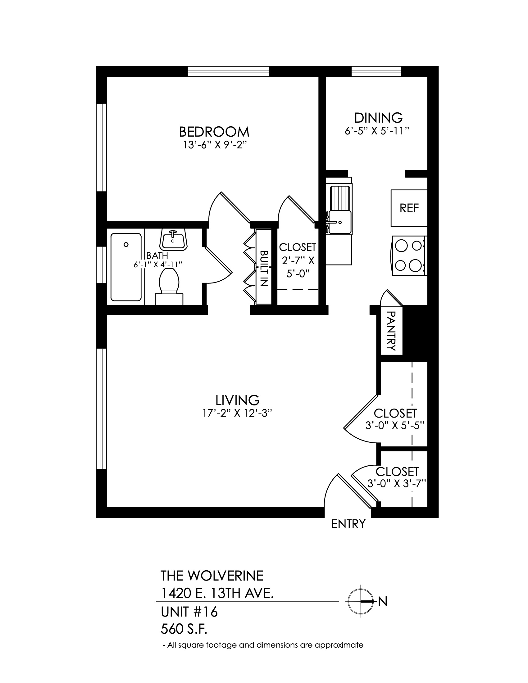 1 Bath 560 sqft.