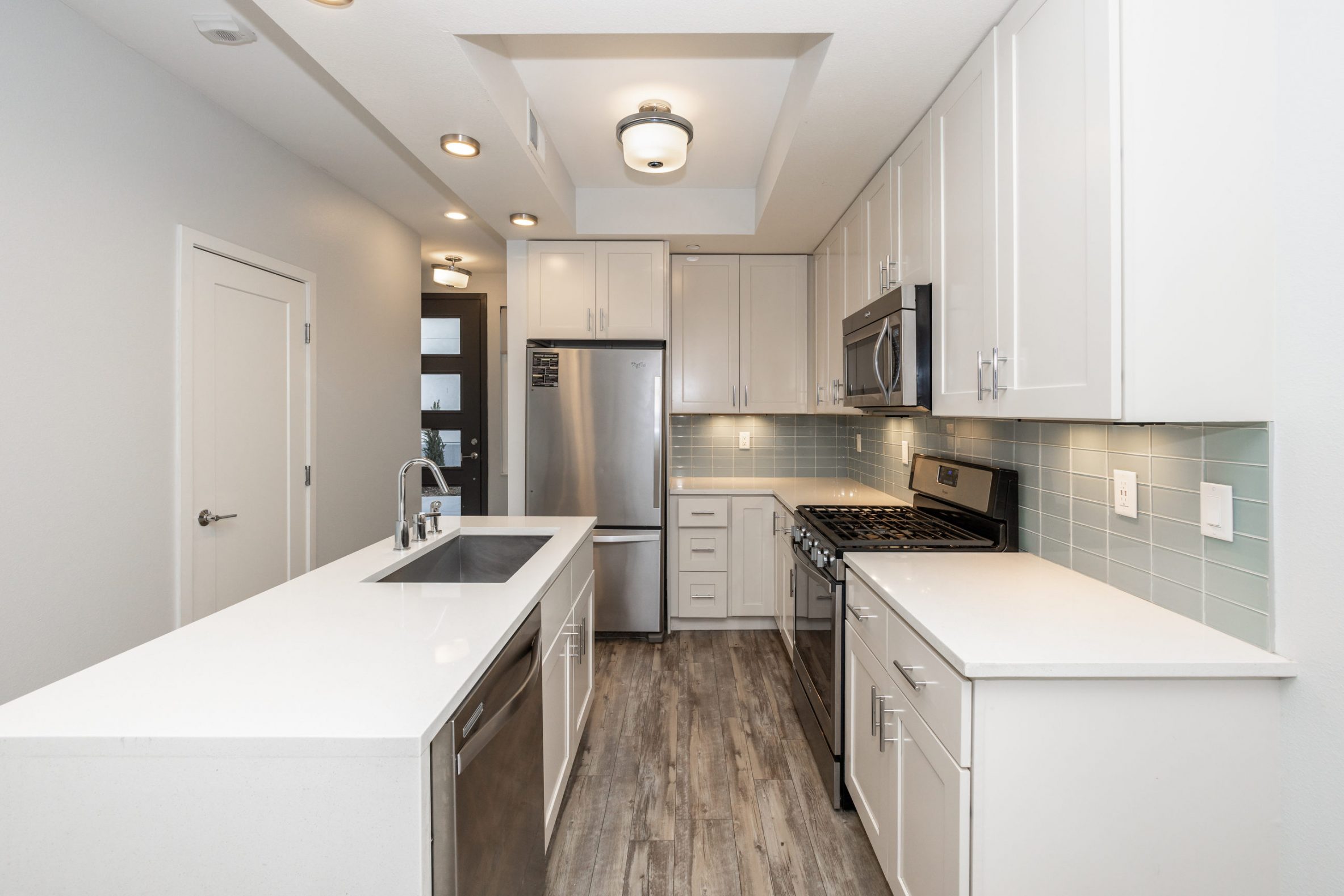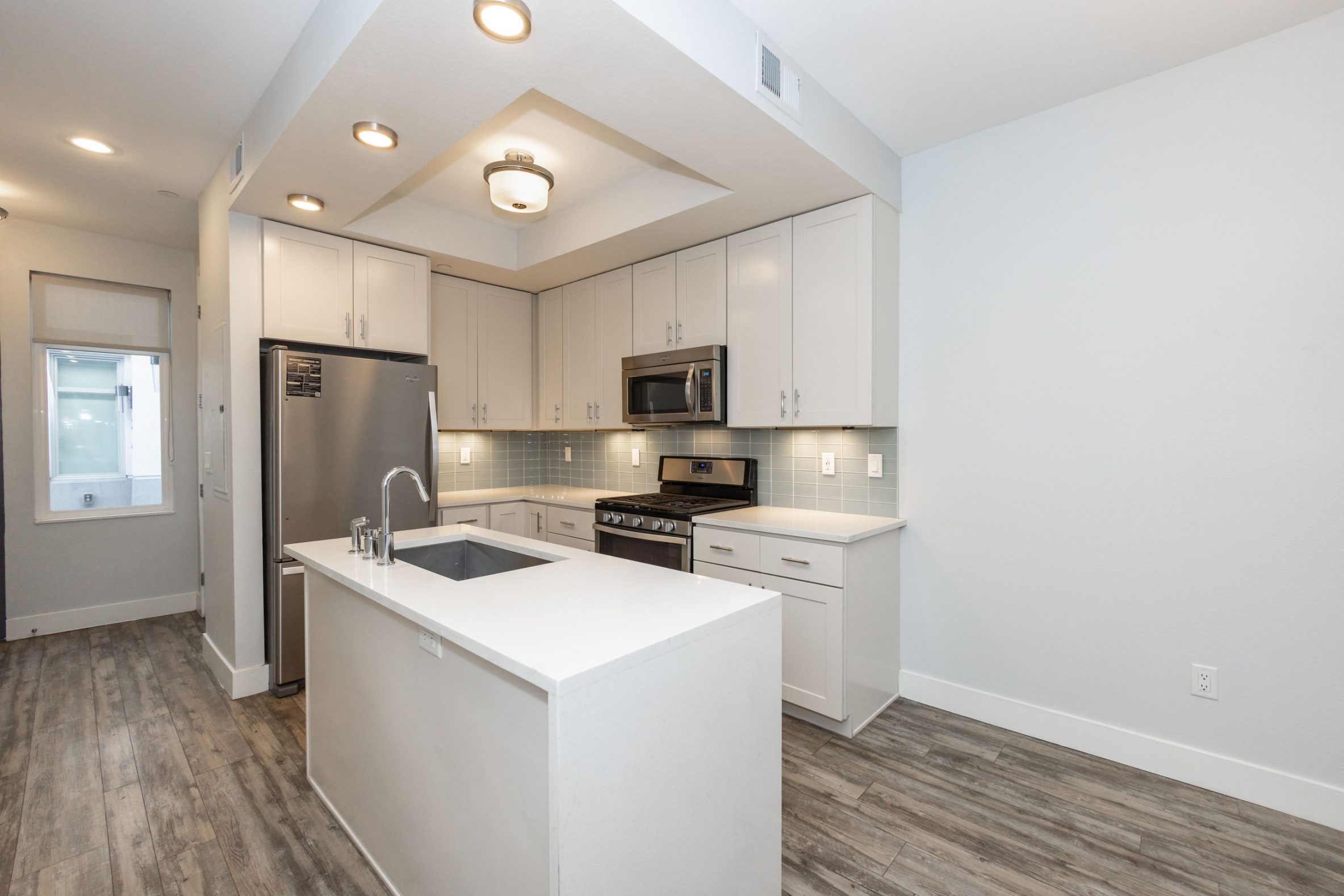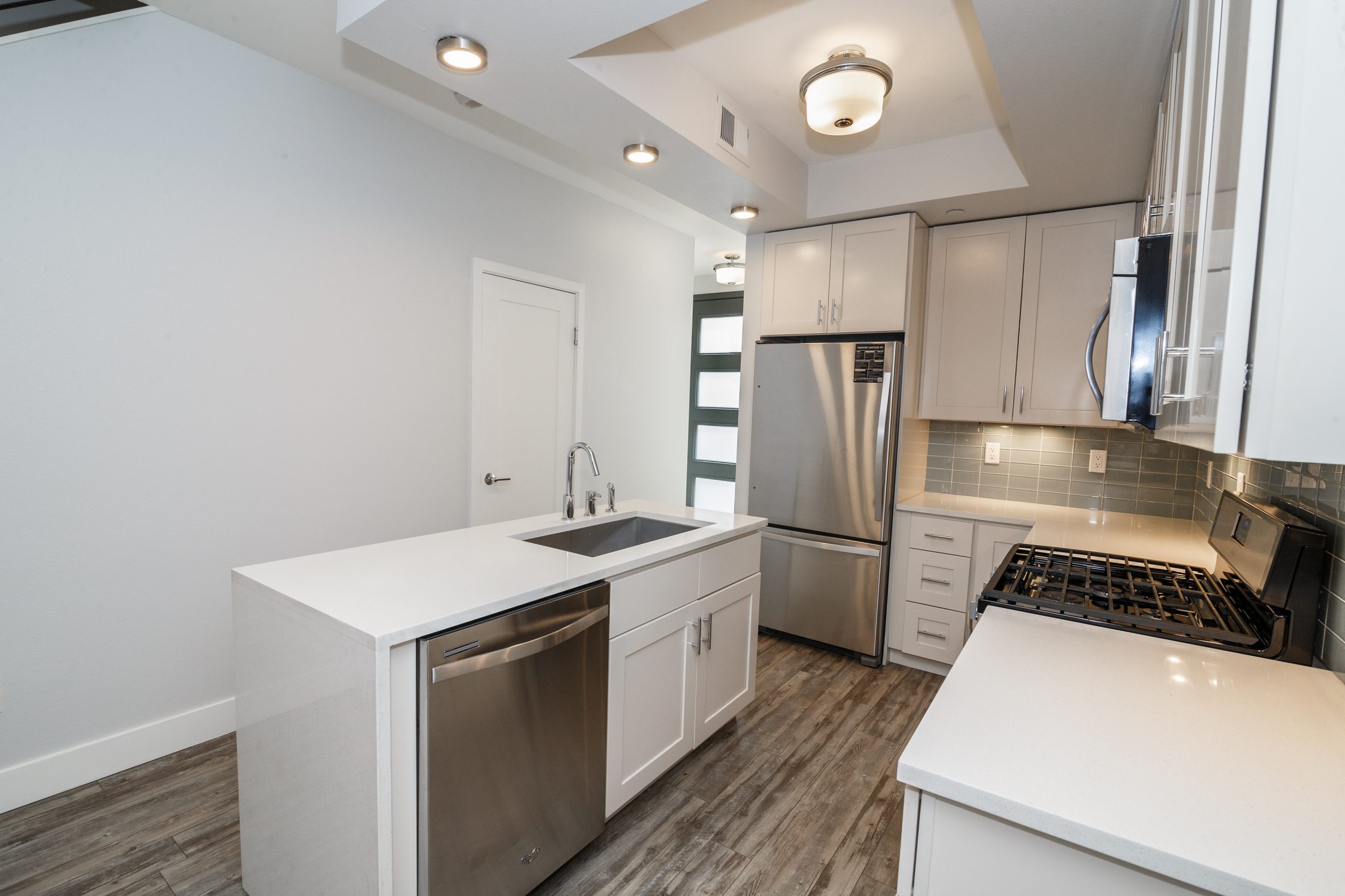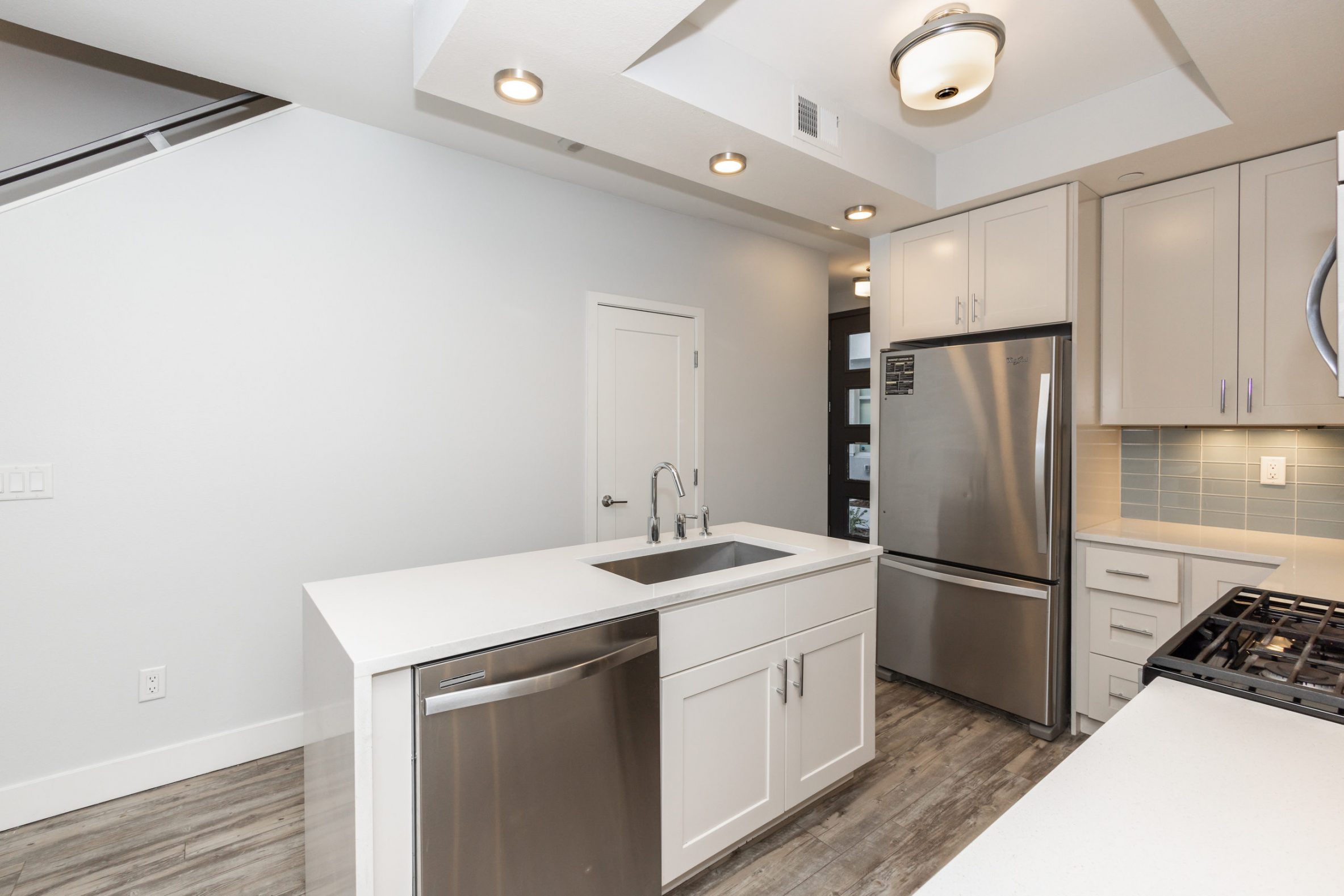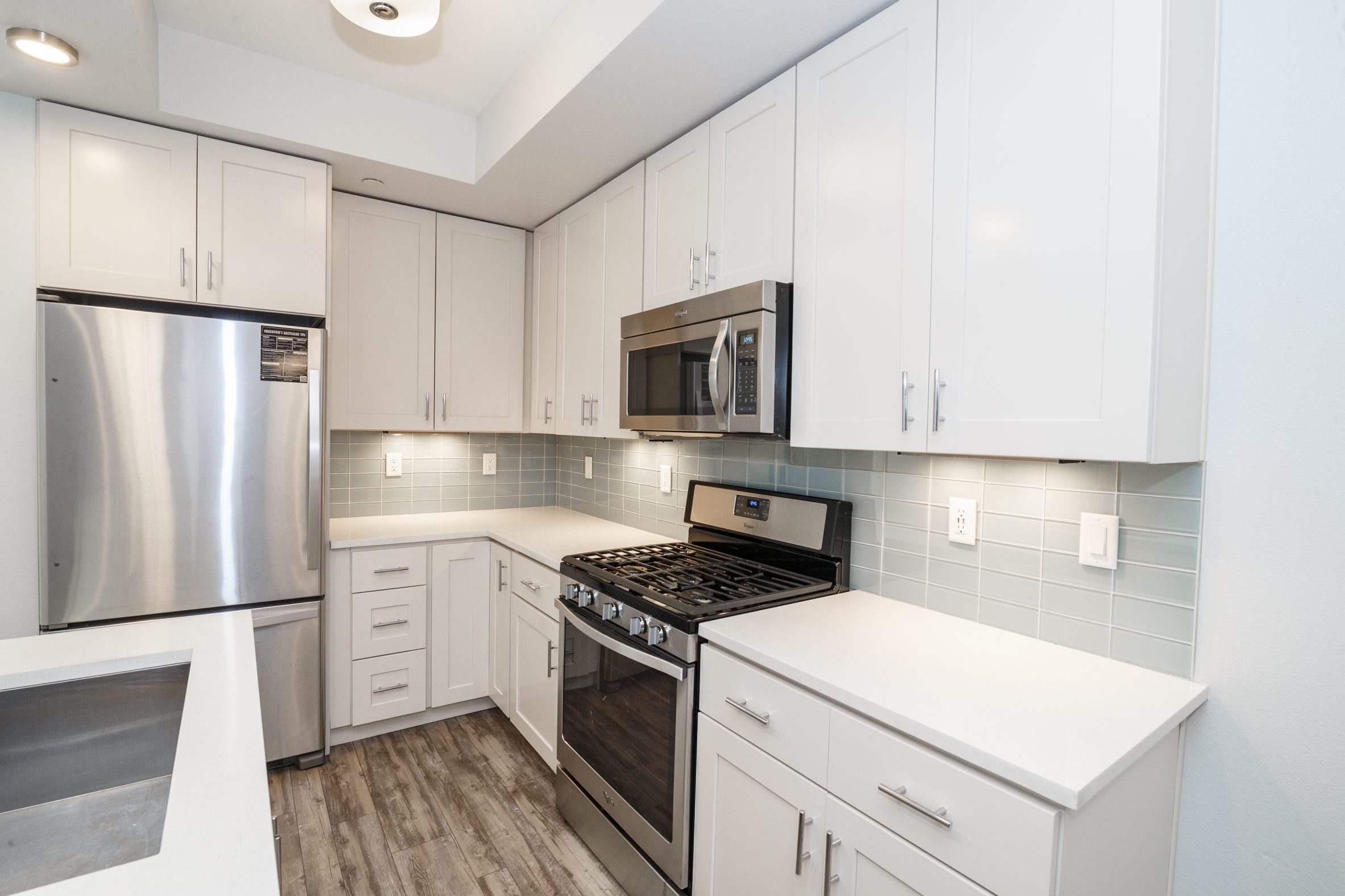 - Updated Kitchens with White Cabinets and Designer Tile Backsplash